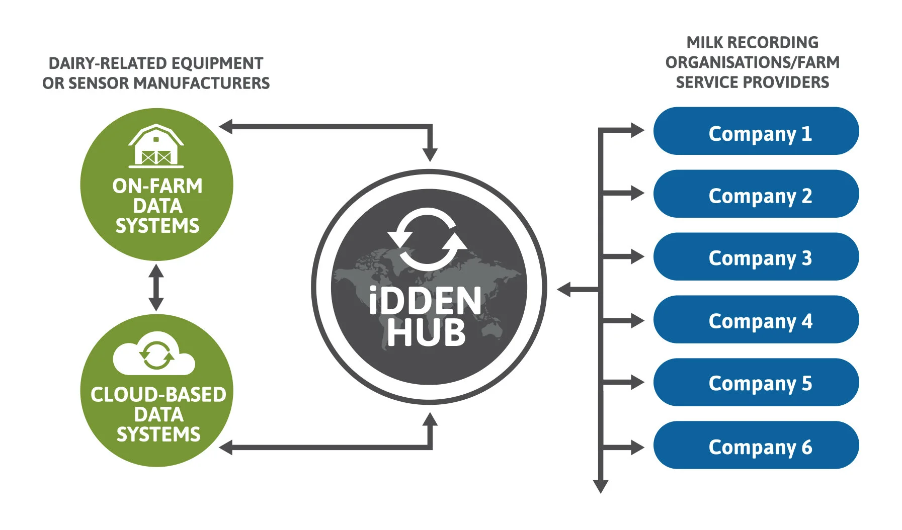 Equipment and technology manufacturers can use the iDDEN Data Exchange Hub as a single universal interface with dairy organisations around the world.